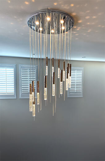 Expert installation of all lighting varieties including pendant lights, recessed downlights, oyster lights, track lighting, and decorative chandeliers for residential and commercial applications.
